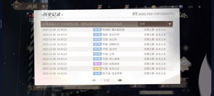 都是两个卡池抽完了再截图。原先有98颜料盒两万七多一点的钻石。幸好都出了。做个记录,下一次就是檐下恋歌了。