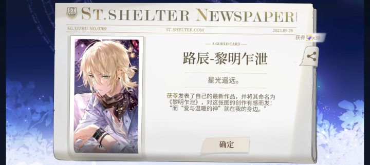要上学,一百多抽攒了半年,中途好几个活动忍住没下等周年,最后全抽完了出两金一张路辰马丘比丘,一张艾因我推天幕行旅,最后没歪很开心,毕竟已经很久没出金好像,sr出一堆重的,全是非推心梗,叠了,个人感觉不是很欧,但出了金就发个贴吧,纪念,祝各位也抽到自推。最后骂一句因为每两星期登两天游戏,真的体验感全无,害,我爬走