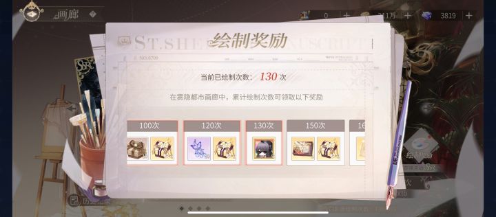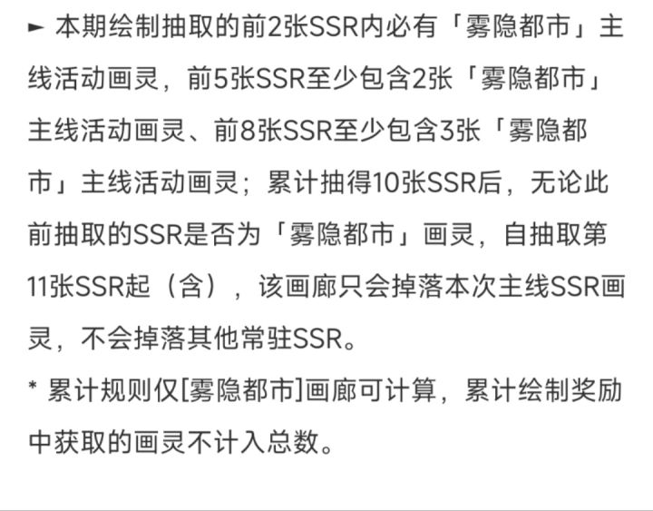 好开心呀,吸了欧气抽的卡,讲一下我的步骤,可能有一定的偶然性1首先靠这张玄学表,当然不太确定,建议攒个20,30抽的样子再抽2,摇匀池子,就是点左右滑动池子,然后我先在写生素材箱十抽了几次,听一个攻略介绍,如果抽到的r卡画灵有八九个,就可以去抽卡了。但是,我一般抽不出来,所以我抽到六个r卡画灵,又换到绘卷池子,直到抽到三星绘卷,大概三四十抽抽到的吧,然后我就直接进卡池抽卡了3上面的字,我选