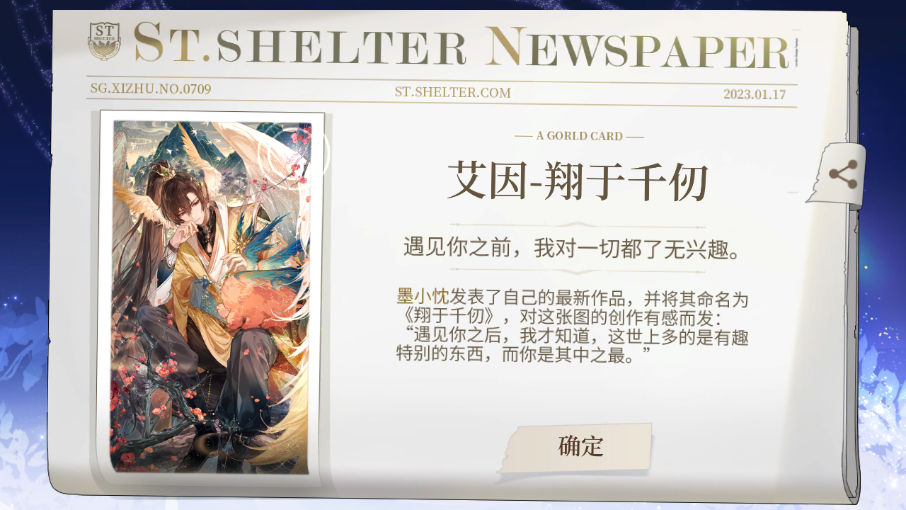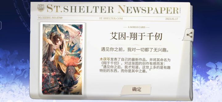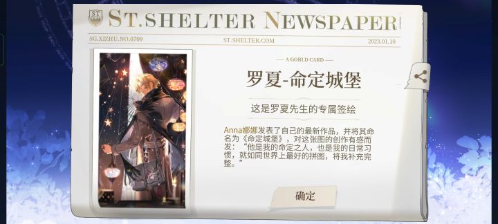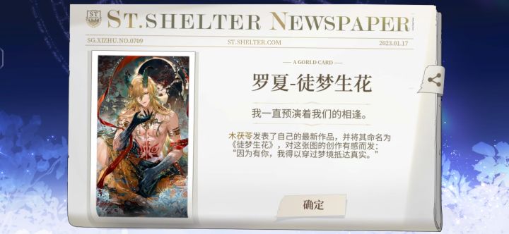 真的谁懂啊 刚上线 更新完以后 去邮件拿了奖励 然后许愿司岚 本着试一试的心态 结果真的给我出了 单方面宣布 今天我的幸运日