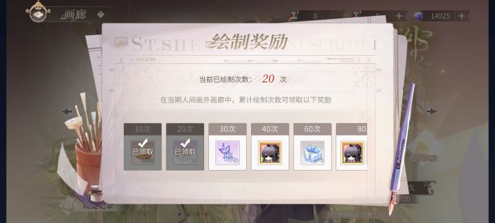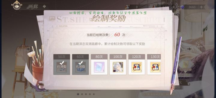 新手池 :执棋者(10)漫长的箴言: 贪恋天国(60)绘忆时光 :枫影湖光(20)朝焰迎灯(30)罪印残响 :惊痛奇观(1)不期而遇(7)无餍无终(72)静夜思绪(87)宵暗之渊(122)永劫轮回(130)永劫轮回(144)睚眦持刀(160)⭐️时间之影(累充)十日谈:此在沉沦(8)神陨纪元:萌芽(70)随心对手戏:昔年叙别(6)无罪之罪:孤情致敏(37)当神明远行夜之灵:春华