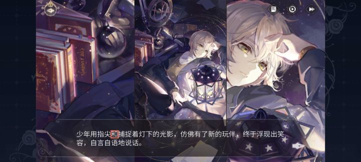 卡组剧情-乐园世界1.原文:顺便补“寄”物资校正:顺便补“给”物资位置:梦魇尽头-起航2.原文:我们去了“去”游乐场校正:我们去了游乐场位置:梦魇尽头-复苏3.原文:少年用指尖“和”捕捉着灯下的光影校正:少年用指尖捕捉着灯下的光影位置:物件-指尖星灯4.原文:“浓”见度极低校正:“能”见度极低5.原文:向司岚“所”发起猛攻校正:向司岚“所在处”发起猛攻6.原文:从腿部的