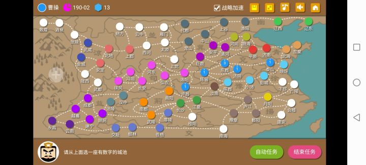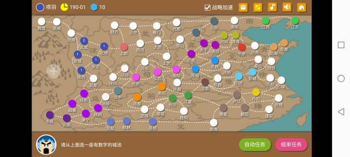 玩的是标易寿小图,一天一个晚上搞定。由于寿命原因后来把君主换成司马懿。刘备前期真的难打,所以一定先要找一个同盟。我的思路是先把袁绍干掉得到赵云,在一路南下,拿下孙坚。在往中间走。本以为我要和曹操干一架,没想到后来曹操死了。没办法,有寿命限制,到201和202年时我的大将都会死,所以打下刘璋后直接干马腾,最后获胜。这是我第三次玩这个游戏,前两次用的是曹操,曹操挺适合新手的,因为前期可以反间得到吕布。这游戏还是挺好玩的,我要去挑战大图了。