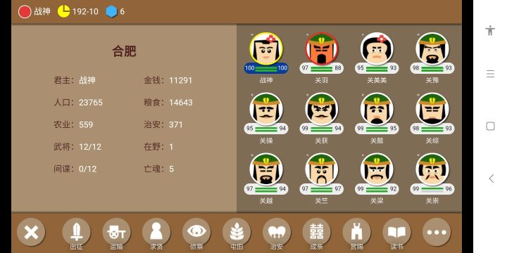 建议有个爵位制,几个地可以封侯,拿下一个州可以封牧比如荆州牧,两个州可以改国号封王,都可以立世子,三个州以上或只剩下三个势力,可以称帝,可以立太子,不喜欢这个角色当主公可以退位让贤,武将战功,等级一封他个统领,等级二封他统帅,等级三封大将军,等级四,封侯,等级五封州牧比如益州牧可以不封,文臣,等级一,县令,等级二祭洒,等级三,军师中郎将,等级四封候,等级五太尉(也就是太子的老师)或丞相也可以不封,寿命已尽或者平定叛乱,也可以封侯,结束的时候,可以把玩家的行程,写成一段历史,比如,公元前几年,占领什么地方,进攻的话叫攻陷,公元前什么年同盟,什么年灭掉什么势力,谁谁谁谁退位让贤,再做个排名,再添加个自定义剧本就完美了。以上是建议😎