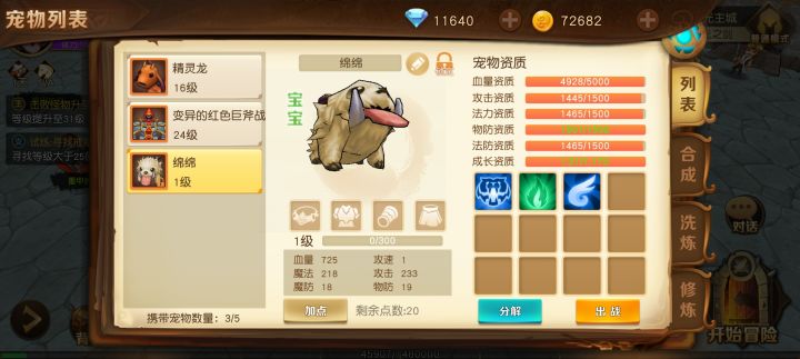刷过资质的宠物变成1级,然后慢慢练上去?