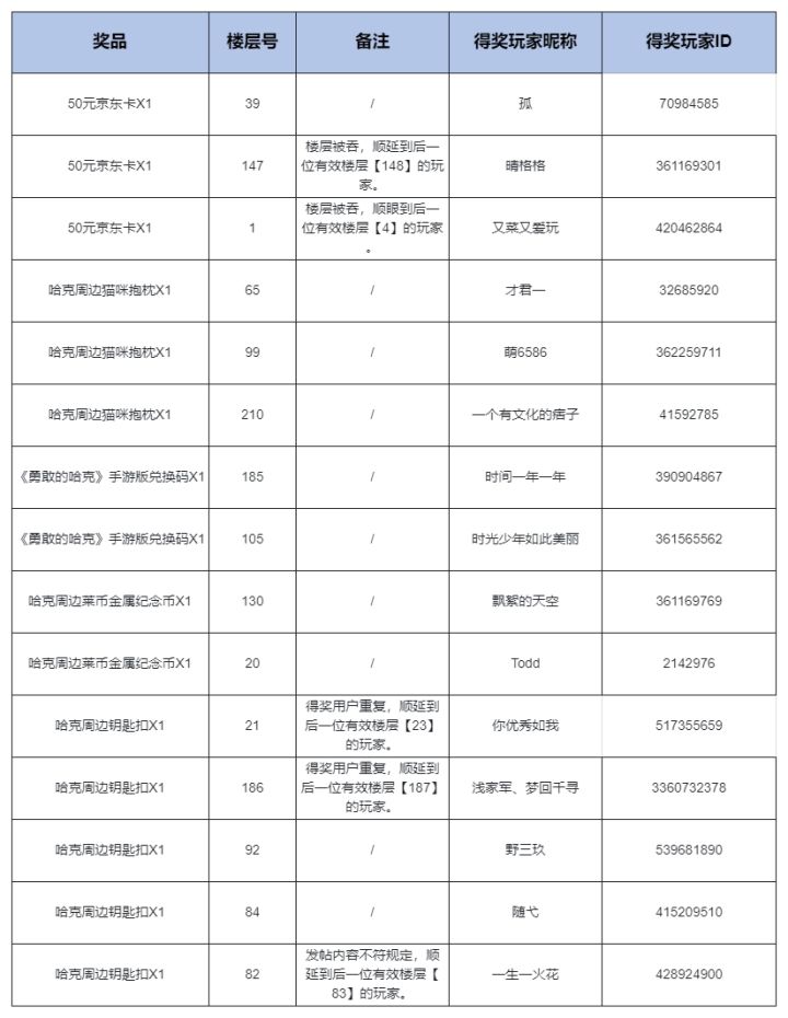 ————【开奖时间】————恭喜以下3位幸运的HAAKER获得本次活动奖品~请以上获奖的HAAKER在1月16日12:00前联系客服人员QQ:2574291467(莱莱子),提供个人信息以便发送奖品,逾期则获奖资格作废;若未在规定时间内联系官方客服QQ将视为放弃奖励。届时,需要提供TAP账号和昵称,以及TAPID截图,我们会进行二次核对。此次未被抽取到的HAAKER也不要灰心,下一个幸运
