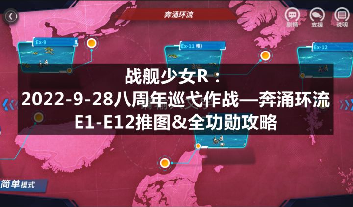 战舰少女R:2022-9-28八周年巡弋作战—奔涌环流E1-E12推图&全功勋攻略(优化版)
