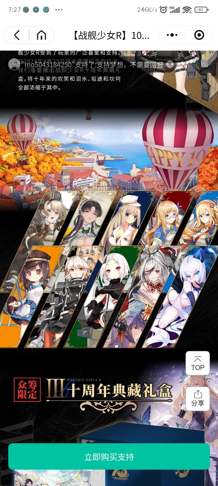这次十周年礼盒里没有港区萌物苏大人的卡或者票。但是摩点宣传的开始就是图一里是有的,而且还有深海。这就可能造成一些看的不仔细的人以为有苏大人或者深海。产生误会。我建议喜欢苏大人或者深海的可以给幻萌发邮件反应这个问题,说不定苏大人就能加进去了。邮箱cs@email.kf5.com我已经发了,大家随意~