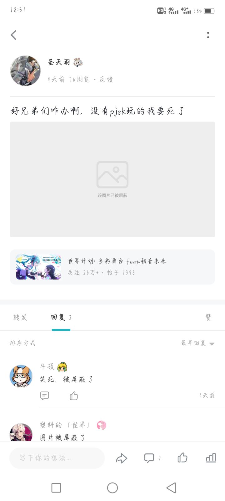 我就不懂了,玩不了pjsk来这里求助都给我把图片屏蔽了