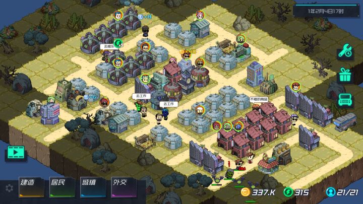1. 游戏难度不高,只要明白节奏问题就不会崩,广告可以不看。2. 不知道是不是bug,如果进入游戏,再退出重新登入就不能看广告了,所以我全面三个月基本都没看广告。。不过依然顺利到25人,后来再登入又能看广告了,就只用了探索三倍,其他都没用。3.刚开局不要建太多建筑,新手提示可以不看,不过目前好像没办法不看新手提示比较烦。4.开局三人没得选,再烂都必须选,选人时红色字少比较好,其他攻略贴说的选