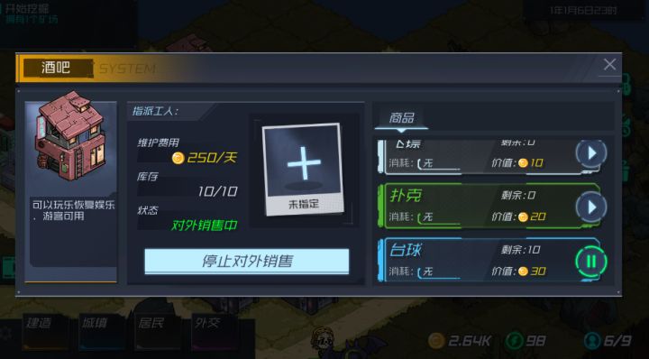 我酒吧有货人家说我没货?然后我有个酒吧是一级的然后我对外开放 又变成有货了 …… 然后我把其他酒吧调成1级 然后那些人物就不干活了就在那待着不动 emmm还有我到现在都不知道城市好感值有毛用 连说明都没有