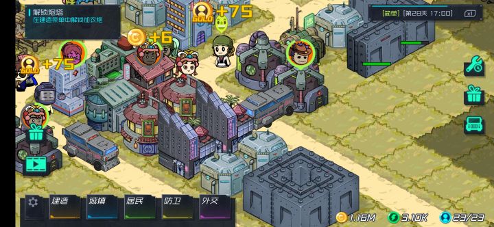 我玩了一星期,整体很好,广告也不过分,我希望这个游戏越来越好提以下几点:1、地面板块不能旋转有些地方看不到也点不到。2、修复的钱太多,也可以说再建一个的成本低,我一个塔修需要1k,买新的才要500。3、所有的人的工作效率都在100%以上,没有对专业划分对于只有工作10的,应该工作加倍等等。4、有库存的但是居民都不会去武装自己(这个是概率事情)不用在意。