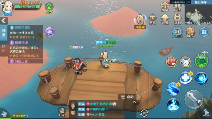 说起副本,大家印象深刻的都是打BOSS吧!在云上城的副本设定里,各种深渊魔物入侵占据领地,需要更多英雄挑战BOSS拯救云上城。在云上城打副本有种乐趣,就是可以一边欣赏风景一边打怪,真实存在“左边有条龙,右边有彩虹”的场景。站上瞭望台,看看辽阔的卷云海岸风景,忽然心旷神怡。但是这海底下是美人鱼汐(主线任务中一个强力BOSS)的栖息地。勇敢的冒险者快一跃而下,铲除魔物! 在神奇的海底世界打斗,排