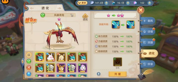 这是出BUG了吧?我不信这是几率问题!这个鸟升6星花的可不是一个五星鸟,是两个,至于为什么,是因为我只能抽出来这个鸟😏