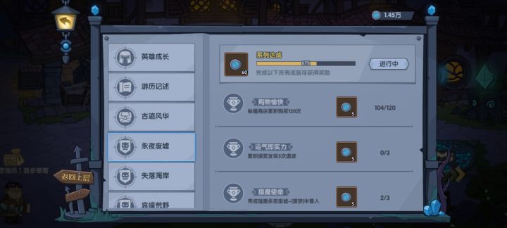 谈谈这游戏坑爹的成就系统1.一周目永夜废墟从没出过遗迹,估计后面还会叫你累积十几次2,购物成就,买道具才算,买幻卡和机甲不算,这关一下就过了,谁会折回来特意刷120次只为赚5遗石。3,这个火蝙蝠一层只有一只,9层下来也就6只。222只算刷多少遍。坑爹游戏,到处不合理😂😂😂