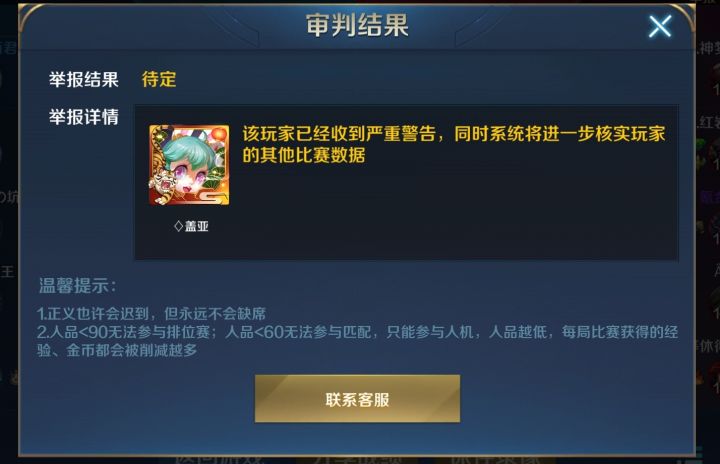 这游戏的举报机制跟坨s一样1/12那个一直送给判定待定👍👍👍