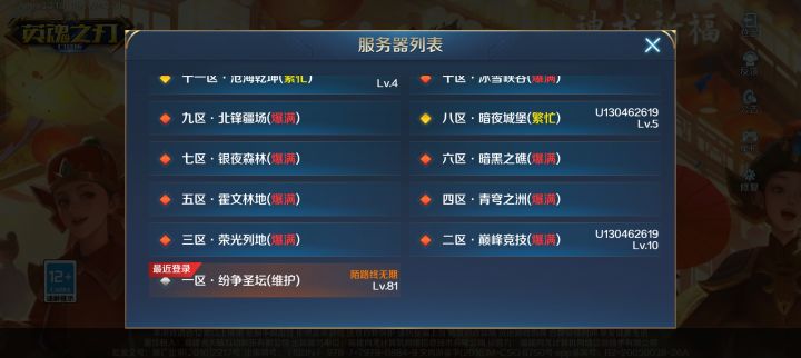 本来以为全区维护,点开列表才知道就一区维护