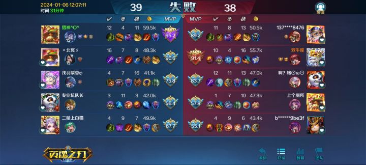从高中到现在断断续续不同平台玩了七八年了,刚回归第一把匹配玩个项羽匹配的队友直接打个0-20,我不理解为啥会这样,刚回归第一把给我个这,我直接卸载不玩了,我不理解为啥匹配机制是这样