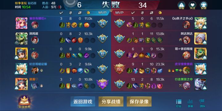前期基本都没杀人,中期经济直接18000,后期经济直接三万多两个大招连着放,技能就跟没有冷却一样最无语的是,游戏结束后,我想去举报他,结果系统一直强制我点返回游戏,就举报不了他,就很气真是款好游戏👏👍