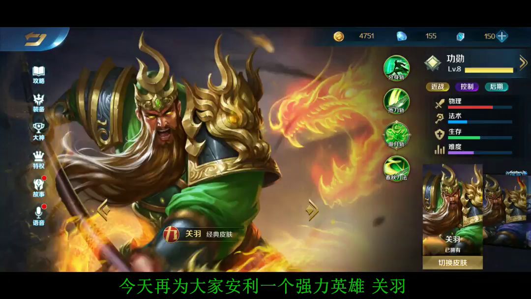 关羽强度还不错,推荐新手使用