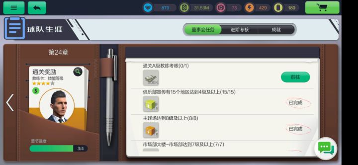 昨晚升级的新版本,发现了几个bug或者不合理的地方这几个技能教练休假了,是设定成这样的吗?待办事项总会有一个待办事项还卡在第一章,因为训练场没升级,我都六级了额外几个问题,每个赛季末下个赛季初会把球员降半星,那球员不特意训练,只让它们踢比赛,能力值会涨吗?如果不涨,那合理吗?