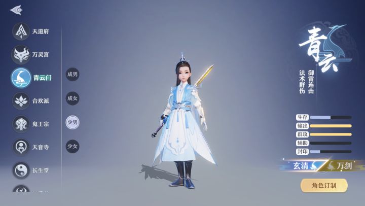 青云门门槛适中能快速上手是队伍中核心的面伤担当,技能兼顾清场与控场,玄清更偏向于纯粹的法术攻击。万剑则是物法混伤。一、输出手法常规战斗场景下,释放群体技能【神剑御雷】守尸即可;若追求后续输出节奏,进场首回合也可选择释放【剑引苍龙】,为后续回合的爆发伤害铺垫。解锁诛仙诀后第一回合可释放诛仙.·雷。 二、人物培养01属性加点10灵加点为暴力输出向配置,该方案适用于PVE场景。不建