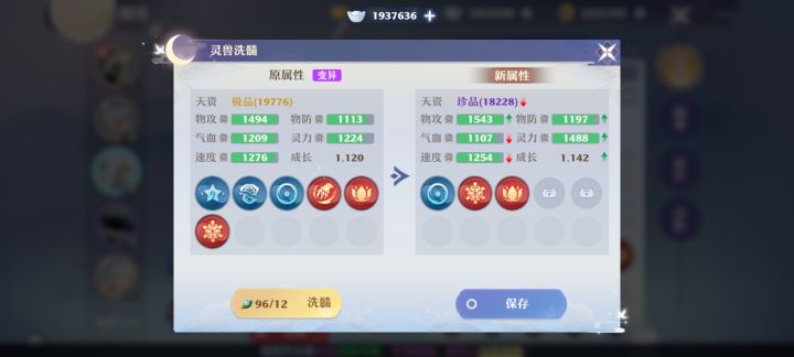 当然,你要是不洗也可以玩,就是屯法宝石头,升法宝那个,55弄个配速鹤那个女人,自带高神,不用洗变异,速通能比人物多50点即可,这个宝宝可以跟到你80(简单说下性价比的问题,性价比就是你宝宝越垃圾性价比越高)