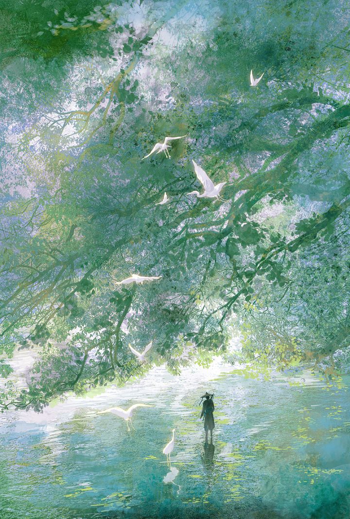 唯美意境插画欣赏:山河远阔,人间烟火