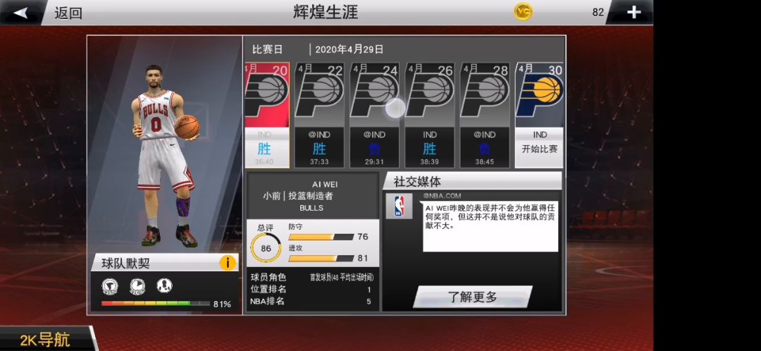第一条:可以自由设定时间,而不是靠球队默契度来决定,比如有玩家设定一场比赛的时间48分钟,然后作为首发上场就要打满全场,中间根本就没模拟过,太过枯燥,希望可以自由设定上场时间。第二条:选秀的过度环节比19版本的好多了,自由度比较高,不像19版本一样,重新开创存档,参加选秀的环节都是一样的,太过死板。第三条:参加选秀进入联盟后,资料显示的都是落选,希望可以改进。第四条:新秀赛季,打完后,数据和