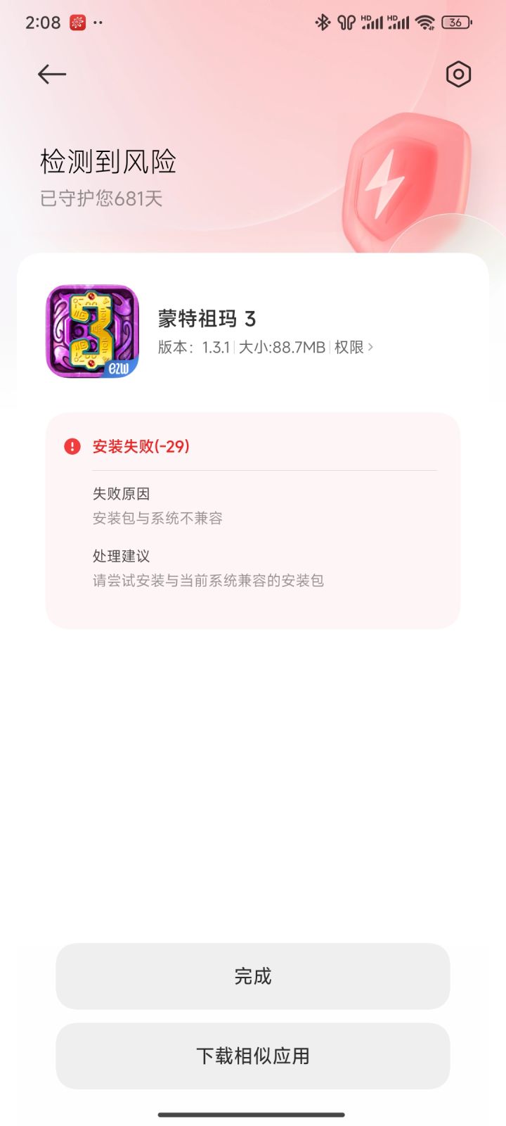 安装不了,退钱