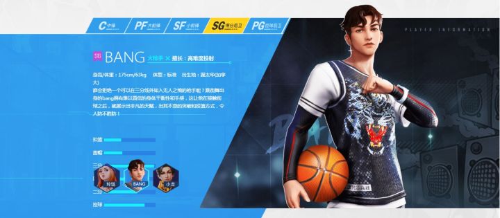 《街篮2》刚刚上线不久,相信很多球友对球员还不怎么熟悉。今天,我给大家带来一篇“SG得分后卫的推荐攻略”,希望帮大家深入了每个SG角色的技能,了解一些对局套路,从而知己知彼,百战百胜。全能火枪手-Bang推荐指数:(3星)操作难度:(3星)球员定位:三分高难度投射获得方式:登录赠送,商城588钻或者58888金币SG Bang是一个技术非常全面的选手,拥有两个投篮姿势和两个突破技能,并