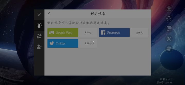 我有谷歌、facebook、tuite这三个账户,但是都绑定不了是怎么回事?谷歌显示的是不能运行,Facebook是无法加载出来,推特同上。😅😅😅