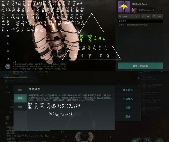 国际服对舞之域双主权战斗团SSUL招新啦,军团8税,全宇宙离吉他最近,多块十级地,满级附属,军团大量的福利!!集结出勤送月卡,旗舰抵扣。一、t5t6新手玩家入团免费送相同等级刷怪船(有一次免费补损机会)二、活跃t7t8玩家入团7天免费送任意一艘战巡三、活跃t9玩家入团7天,成本价t9战列一艘四、活跃t10玩家入团7天,t10战列均以成本价出售一艘五、军团有刷怪队,九级十级地随意刷,军团主权地有刷怪奖金加成。六、军团有专业十级挖矿地,军团75折收矿,7折收菜mk垃圾等,有多少收多少。七、反收割/收割特定目标有赏金,km百分之20八、军团内部买船全部都有优惠,所有势力船都可代造,代推图。九、军团每周有pvp活动,pvp活动制式装配全都有补损,不听指挥损除外。十、都看到第十点了还不来!快快加qq群928277953视频:SSU招新视频震撼发布,链接【EVE手游SSU军团招新(国际服,福利多多还有萌妹纸)-哔哩哔哩】https://b23.tv/hiRPbnA)