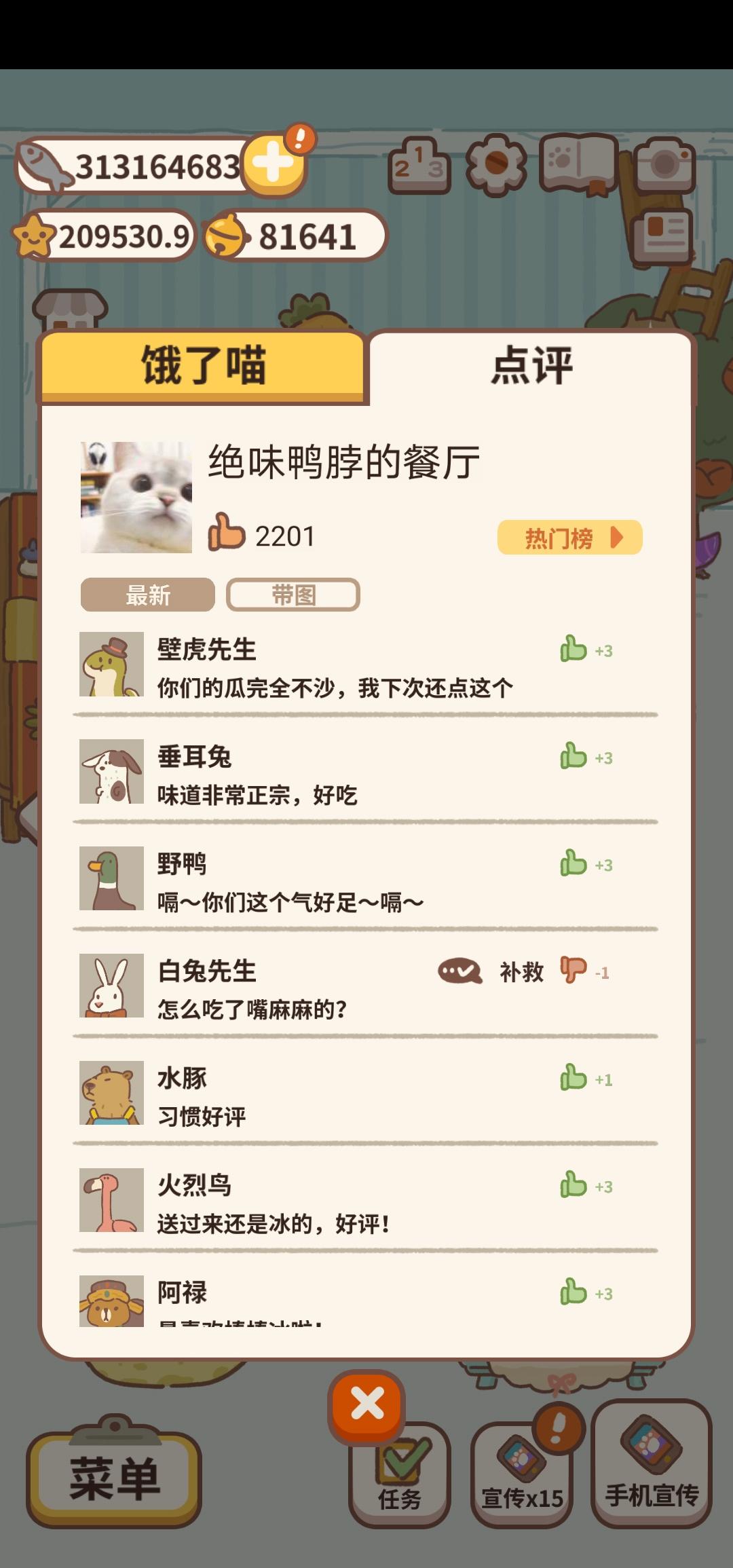 真实想法吖,我的同学玩了四百多天她的资本都没能比得上我的,今天我们就来聊聊有关于动物餐厅的一些实用攻略(温馨小后续:1攻略讲完后会出一些关于一年一次活动的概要,比如说和做任务,做任务会得什么东西需要提前准备什么。如果有需要的话可以私信哟2还会出有关于菜单上没有的物品攻略比如花篮)还希望小伙伴多多支持我除了上一期我们讲的,这期来我们先讲一下发传单。随着等级的提升,我们招来的顾客会越来越高级。前期建