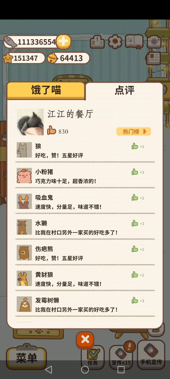 不知道大家是否点宣传点的超烦(反正我之前是)分享一个小方法:(不用连点器)1.需要员工招客的多多(这样就可以长按了);2.寻找一个可以让屏幕感知到的小物品(太大不方便),这样就可以代替手指了(要导电才行哦);3.把这个小物品放在[宣传]按钮上面(可以先拿这个小东西点下屏幕看有反应没有),成功开始宣传就ok了。(如果点屏幕其他地方有反应而放在[宣传]按钮上面没法如同手指长按一样一直宣传的话