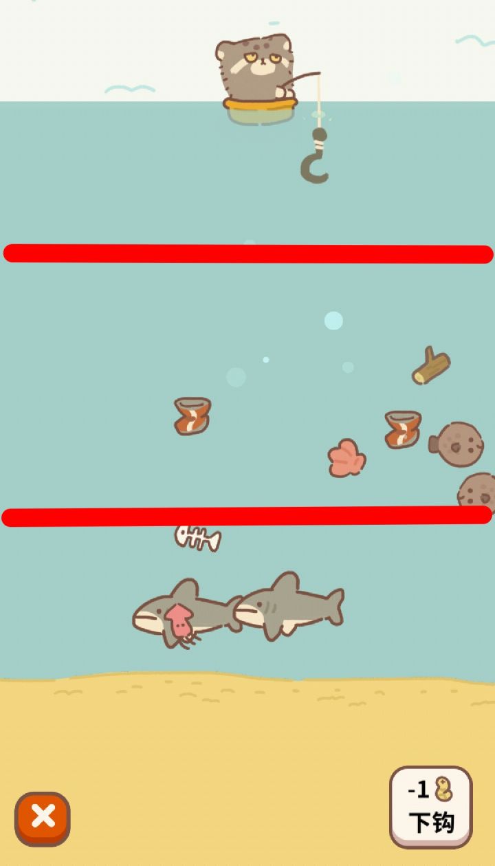 ①鲨鱼 钓鲨鱼要对准他背上的鳍②红河豚 可以在他膨胀后大概1秒钓,成功率很高③贝壳 在他停顿的时候下钓,要求手速快,刚好对准且上面没有垃圾是最好的④鱿鱼 尽量在他处于中部水域时钓⑤海星 在离水面2/5时钓最好,太靠近水面了就钓不起来⑥水母 在中间水域游动时钓⑦螃蟹 上方无遮挡物时钓,建议清空垃圾树枝后钓⑧小丑鱼 钓到了就基本不会挣脱,要仔细观察他游的轨迹然后下钩⑨比目鱼 (红河豚)