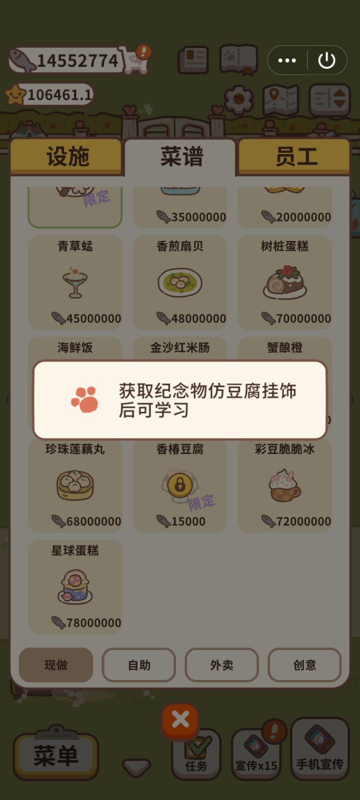 #动物餐厅 #动物餐厅攻略 第二个任务总是完成不了怎么办,鲷鱼烧总是卖不够,我这第2次一星评比了,总是到不了150个,求大神指点呜呜呜