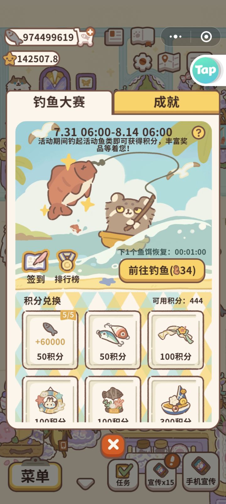 不是哥们,官方是不知道它的钓鱼是全游戏最搞心态的吗,还开活动,开就算了,还搞积分制,积分又少,鱼又难钓,这么多天我一个积分都没花,才堪堪四百多,无语死了。另:#动物餐厅 排行榜上几千积分的,他们到底怎么钓的,有朋友能说一下吗?