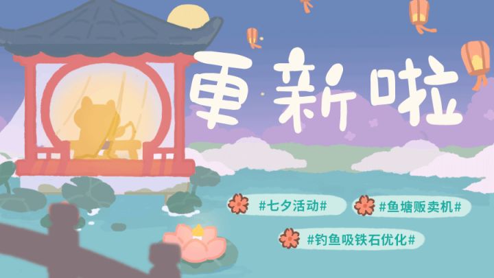 【更新啦】版本号:9.6.21、新增贩卖机设施鱼塘贩卖机会在每天的8:00-10:00、12:00-14:00、19:00-21:00贩卖随机鱼🐟(但不包含特产鱼哦,2000星可开启)2、鱼塘磁铁石升级本次更新,磁铁石也做了修改哦。不仅磁力范围增加,而且前两个“吸”住的物品,100%不会脱钩!3、牛郎织女限时回归!限时回归时间:8.3 6:00AM-8.7 23:59PM去年七夕的特