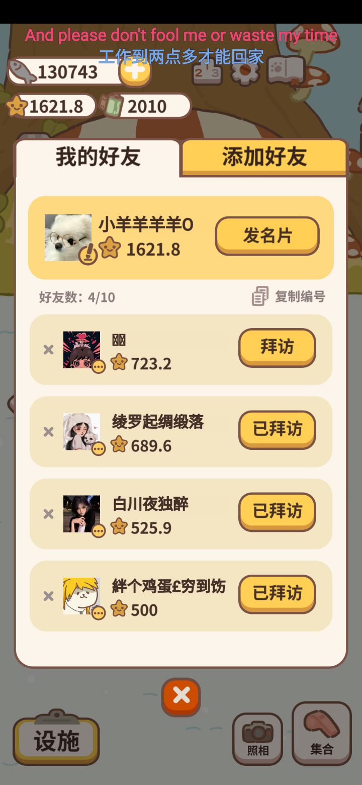 有没有加好友一起串门的呀