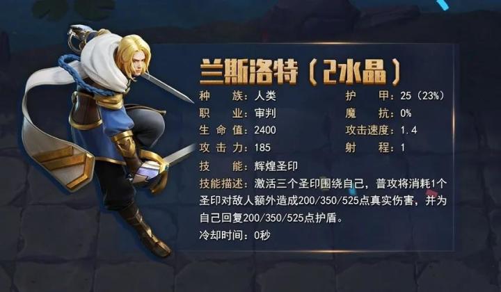 HI,上期的大神解读不知道大家看没看过瘾呢?上期大神说到,虽然兰斯洛特是一个拥有人类及审判双重属性的英雄,但它是一个依靠技能又吃普攻的英雄哟!为了大家更好的了解兰斯洛特,本汪拖着冠军大佬:Miss微小呆-MG为大家通宵达旦做了一份兰斯洛特的攻略,闲言少叙,帅汪这就把干货分享给大家~兰斯洛特(2水晶)棋子解读兰斯洛特作为一个2费棋子在前期打工的作用还是很顶的,能扛能输出,并且有护盾还有真实伤害