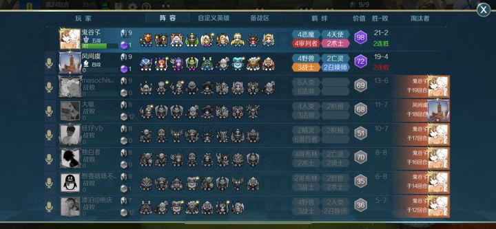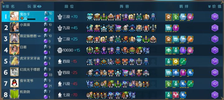 6.11四野兽羁绊技能更改,前期可能较以前有所提升,但后期尤其是对比3星青蛙的后期绝对是削弱。通过一天的排位野兽玩家明显减少。我的建议是通过前两轮的阵容选择人法流或新版本的新兴阵容。下面重点说下新的流派。天使恶魔审判:新增加了两名天使和恶魔阵营的全面增强让这套阵容一下子脱颖而出。四恶魔四天使四审判只需要9人口便能凑出来,而且卡组只有大天使米迦勒是4星牌。其他牌在前期均有概率刷到。在我看来