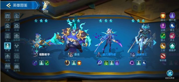 搬运今天的话题主角:亡灵种族!这是一个非常诡异的种族,亡灵种族的6名英雄囊括了6个职业每名英雄对应一个职业,简直让人眼花缭乱。种族概况【亡灵】种族情况:无详细资料记载。种族英雄:6名。暗影射手、暴食、夜刃潜行者、深渊骑士、暗影妖姬、暗影魔导师·天启职业分布:1猎人、1战士、1潜行者、1骑士、1术士、1法师图1. 亡灵种族图2. 亡灵种族种族羁绊当我方场上有多个不同种类的