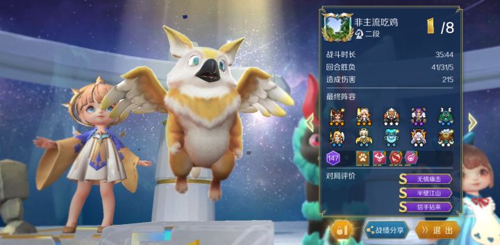 主体就是审判夜莺电击治疗,这一把死活拿不到人类审判,但是4审判的触发几率也够了。从9回合合了电刃之后就开始屠杀全场,这伤害也是看得我一脸懵逼。有幸被这种恶心的东西制裁过,俗话说的好,打不过就加入