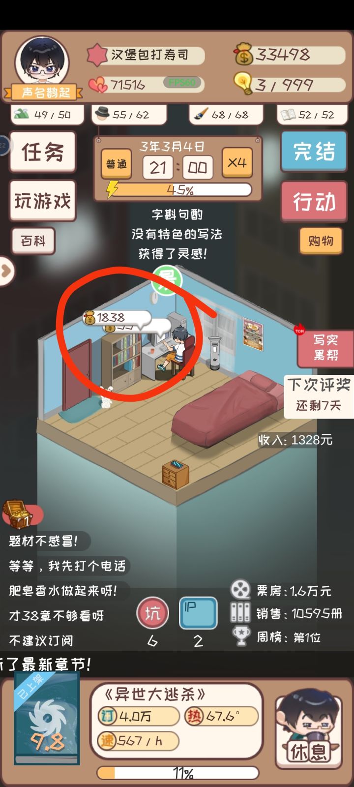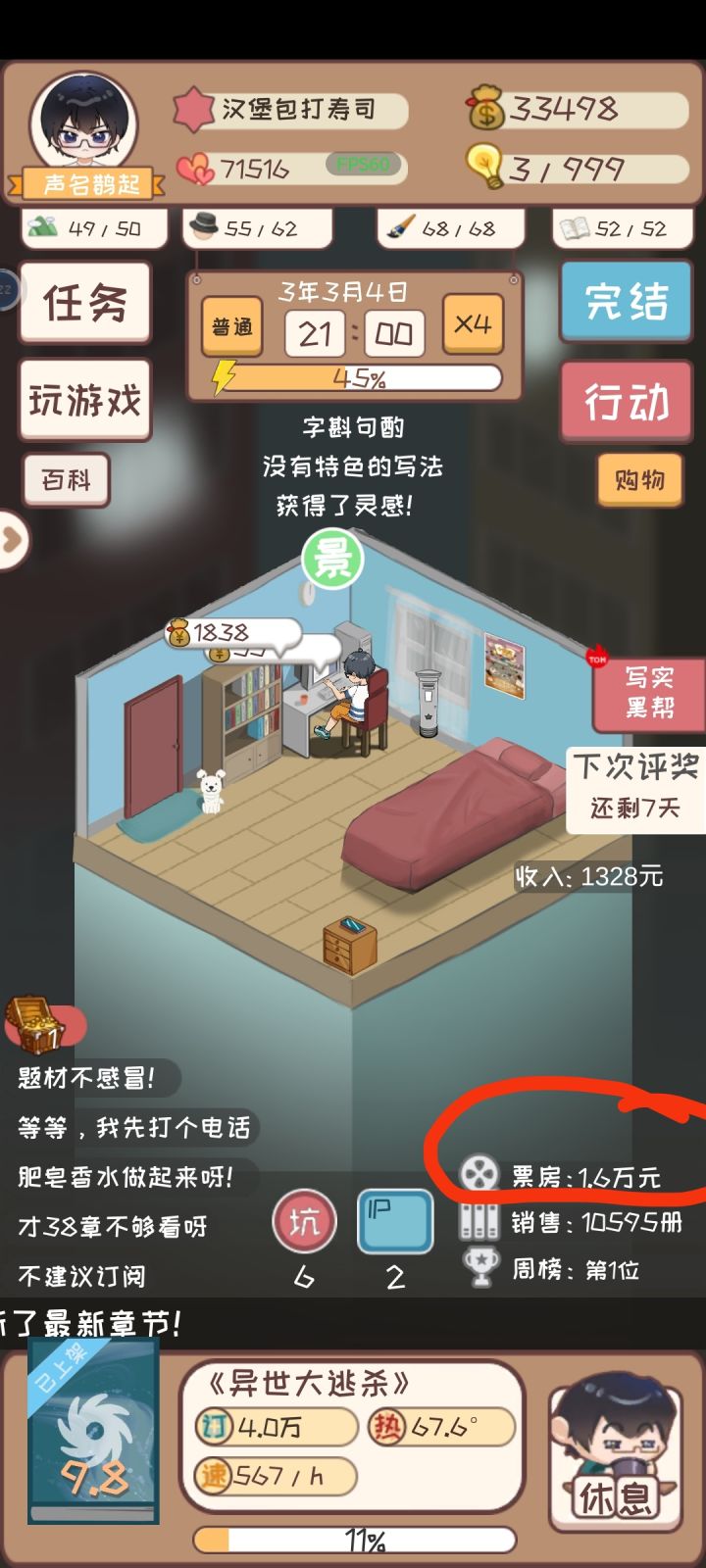 虽然不可能有人修复了,成就完不成啊,写作能力总和达到1000,单项还不到250就说最大了不能再学,而且此时点击二倍收益,会浪费免广告次数。