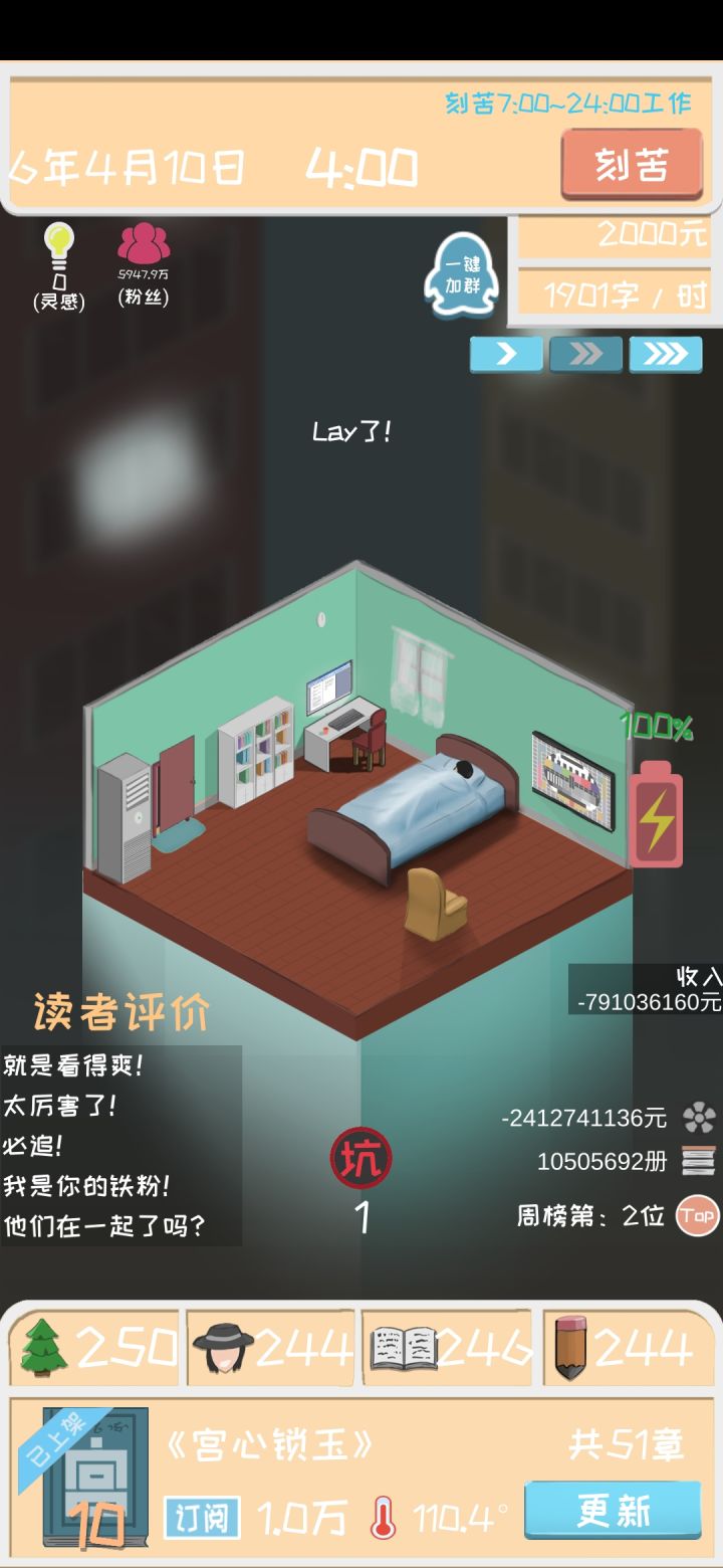 什么时候能更新呢?游戏很有趣玩法新颖让人眼前一亮,缺点后期单一,建议增加读者评论,翻来覆去就那几句。还有房子家具种类需要增加,添加自由配色啥的。可玩性就高了。