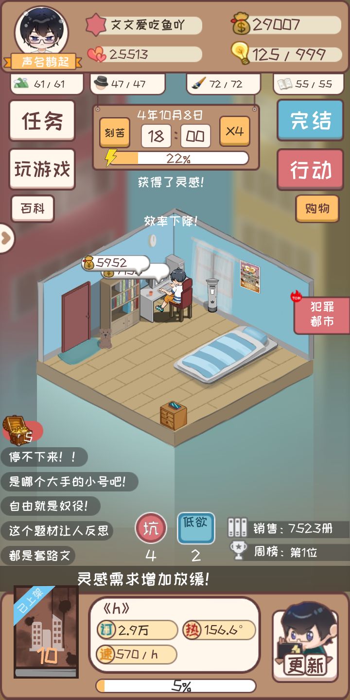 我不李姐啊,提升四维需要钱 ,获得灵感要体力和钱 但是书上架,线下发售,电影给的钱还不够,给的太少了,得加钱!!!