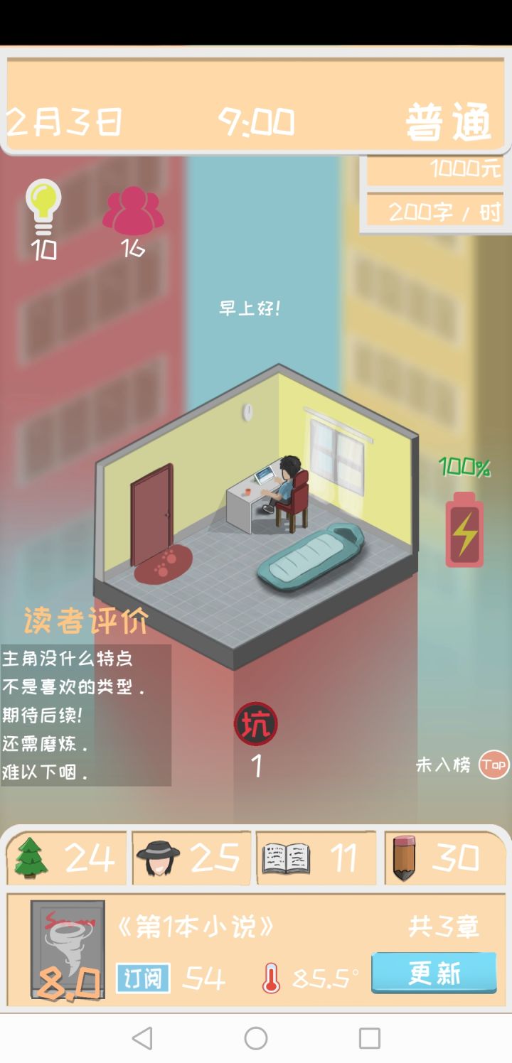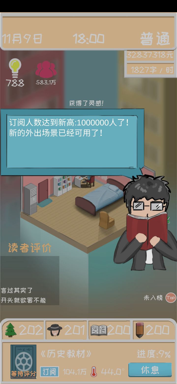 玩了一晚上,三千元到五千万。其他的没啥,就是有点费事,放置游戏都这样,升级技能来来回回的一下下点,为了点灵感,前期看八骏图看到崩溃啊( •̥́ ˍ •̀ू )订阅100万新外出场景提示卡住了,来回重启也打不开。正好12点,祝福,晚安