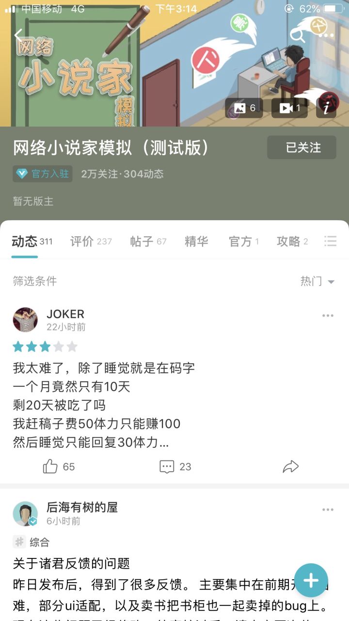 一直很喜欢这种类型的游戏,花了几个小时的时间来玩就把家具都升到满级,后期毫无难度,游戏流程较短,而且等到我玩的很后面了,游戏里的小说类型还有很多没有解锁,也没有耐心去解锁了。总得来说很喜欢这个游戏,谢谢作者!
