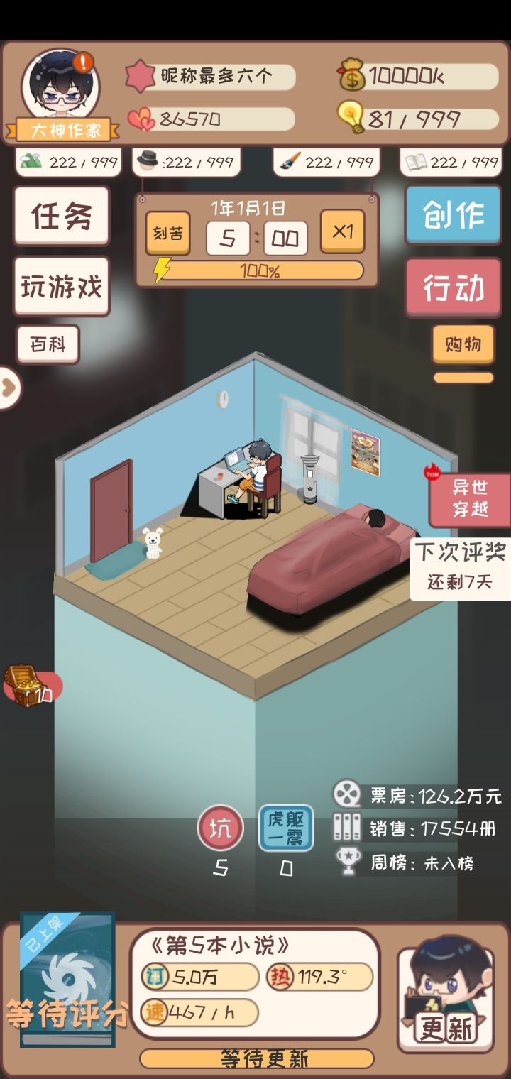相比之前界面复杂化,bug多元化,之前只不过是一个出版卡主的问题,现在是随时都能出问题……这不,时间卡住了,彻底不能动了……界面太复杂了,基本没欲望了,建议游戏改成收费的,收个大神把bug除了……@作者